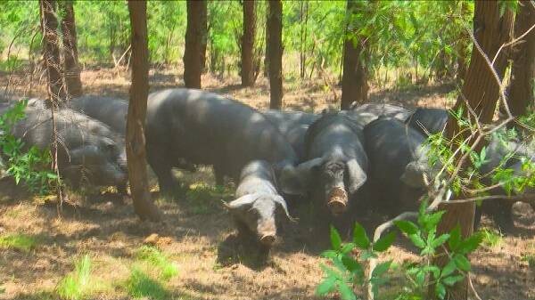 黑山猪不适合在猪圈中养殖,和白猪相比,从野猪驯化来的黑猪带有一些野性,比白猪更加“勤快”,喜欢运动,所以,放养的方式更适合黑山猪。王坟山区植被丰茂,山泉水清冽甘甜,黑山猪们生长在这里,吃的是山林中生长的植物、野果、野生菌类,喝的是山泉水,吃饱后还能在山林中奔跑嬉戏,十分有利于黑山猪的生长。