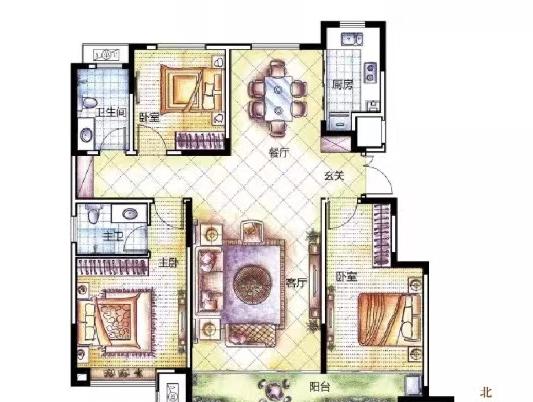 城北**社区,铠佳景园,电梯洋房,125平三室,南北通透,户型超好,一梯两户,公摊面积更小,小区环境优美,是你理想的居住之地!