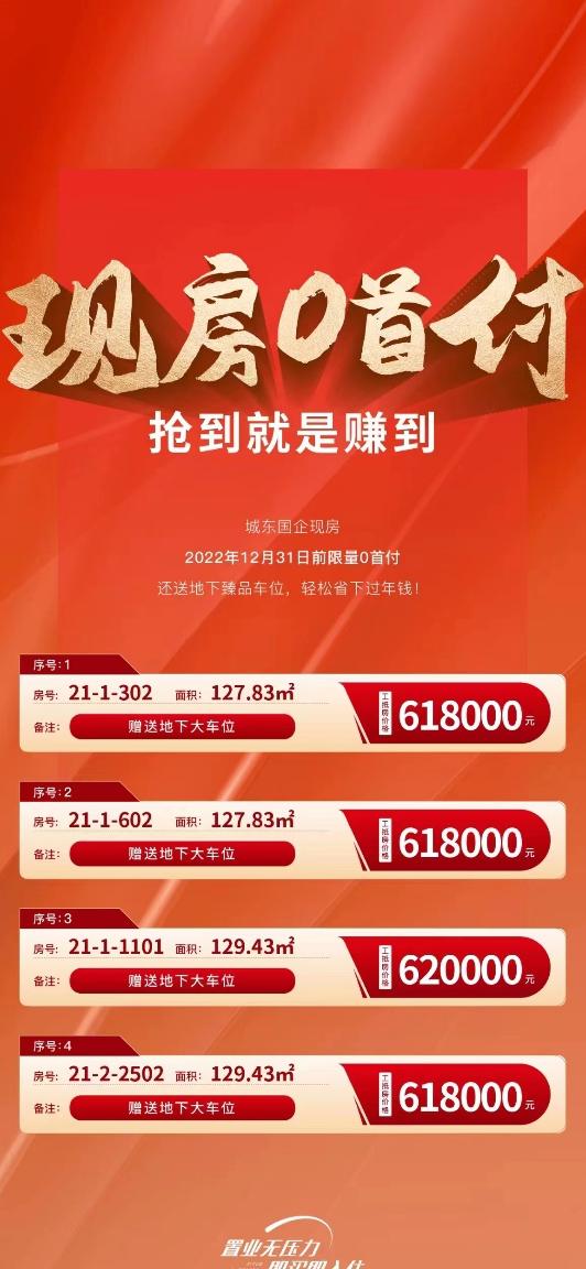 16楼128平车位60万,首付5万起 11楼130平带车位62万,