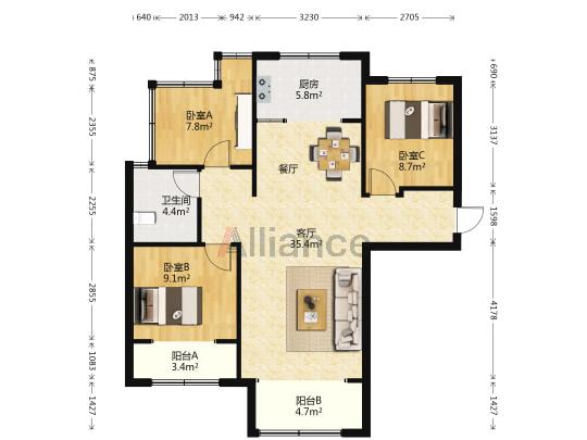 3室2厅1卫