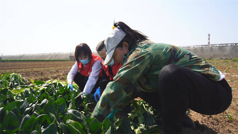 这几天,青州市王母宫经济发展区后范王村菠菜种植户杜桂苓的菠菜地里格外热闹,来自青州农商行的志愿者挽起袖子帮杜大姐收割菠菜。收好的菠菜可不是拿去卖。