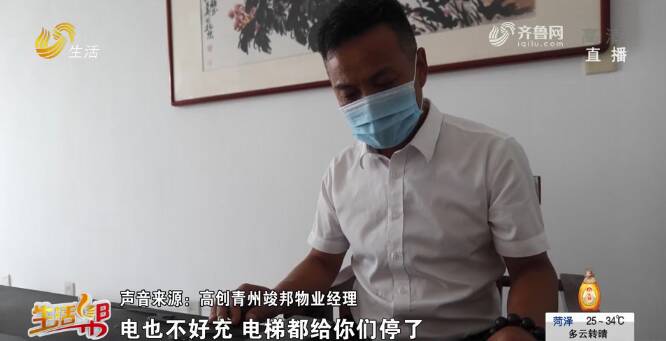 高创青州竣邦物业经理在电话里表示:“电也不好充,电梯都给停了,肯定电也不能给你充,集团那边不让充。”