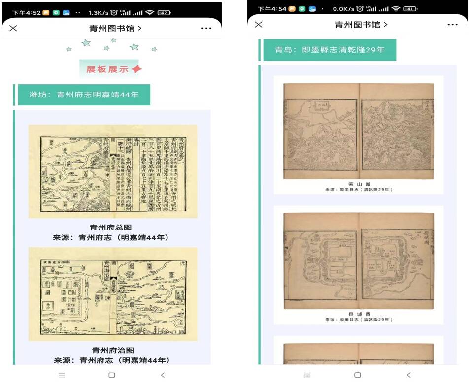 四、线上展览展示,实现开放式办展。青州市图书馆开展了“辞旧‘楹’新 翰墨迎春——古今名家楹联文化线上春节特展”、“文以聚心 艺起抗疫 ‖ 抗疫诗词作品展播”、“胶东五市独具一格的古籍方志中的地图文化联展”等活动全部实现在线展示,真正做到开放式办展。今年来,利用微信“云阅读 悦精彩”平台组织举办了13场线上展览,吸引众多读者参与,收到良好效果。