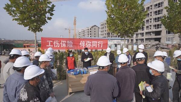 近日,潍坊青州市社会保险事业中心开展工伤预防宣传进工地活动。