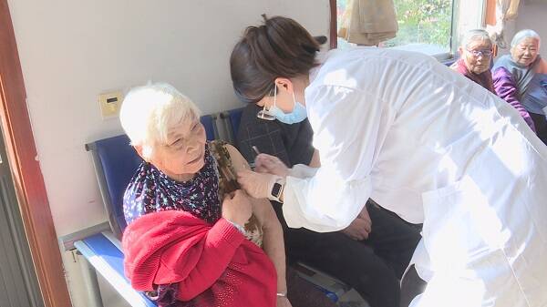 接种现场,接种团队严格按照防疫要求,提前做好信息登记等工作后,携带医疗用品,依次为老人进行接种。