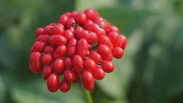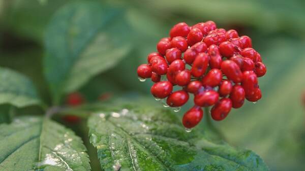 近日,潍坊青州仰天山人参开始结籽了。