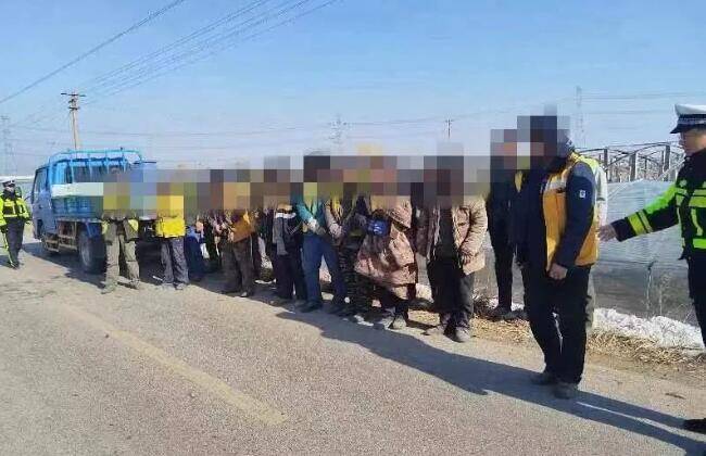 村民图方便乘坐货车回家 货车后斗满载16人被青州交警查处
