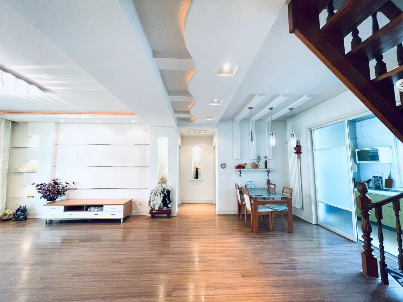 市中心**房。。。天山花园。4楼复式。147平。 4室2厅。带车库储藏室,双证可按揭,,精装修,南北通透,复式格局 ,小区实施齐全,详情来电咨询,,,