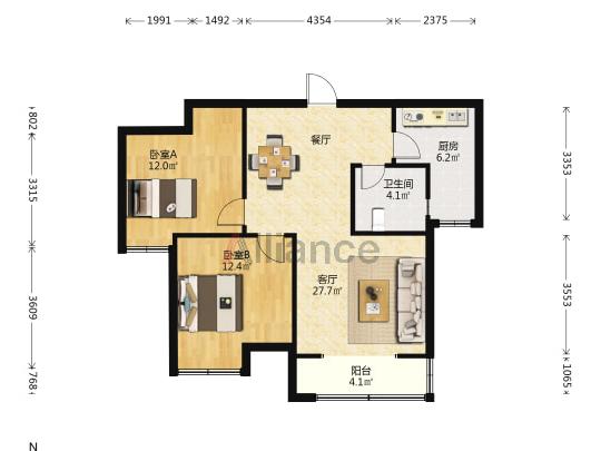 2室2厅1卫 | 95.00㎡ | 2012年建 | 4/17层