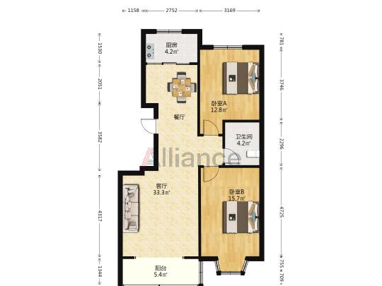 3室2厅1卫 | 117.00㎡ | /6层