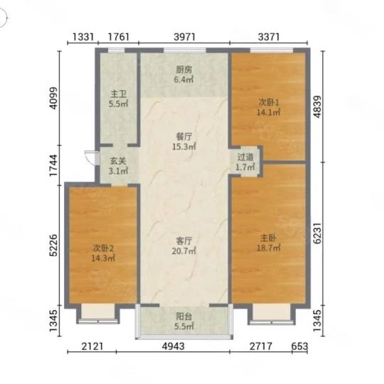 3室2厅1卫 | 97.00㎡ | 100年建