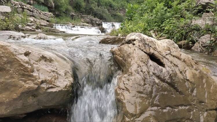 汛期以来,降水增多,雨后的青州市西南山区溪水潺潺,山水、绿林、花草、叠瀑共同描绘出一幅生态美丽图画。