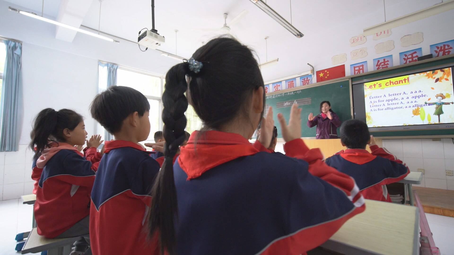 一二年级是培养英语听说能力的关键时期,王府街道刘井小学开设了趣味英语课程,与传统的认读教学不同,老师将英语字母编成好听的儿歌,并将肢体动作加入其中,在轻松愉快的氛围中培养学生的英语学习思维,与三年级的英语学习做好衔接,同学们学习英语的热情非常高。