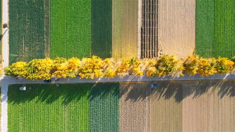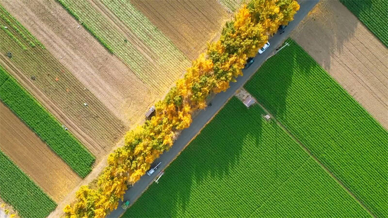 冬日暖阳,银杏叶落似金。在青州市何官镇南张楼村,农田边有一片绵延十里的银杏林。碧绿的农田,金黄的银杏林,叠翠流金,独成一景。银杏叶黄的纯粹透亮,落叶铺满地,像一片金色的海洋,置身在其中,心情释然。