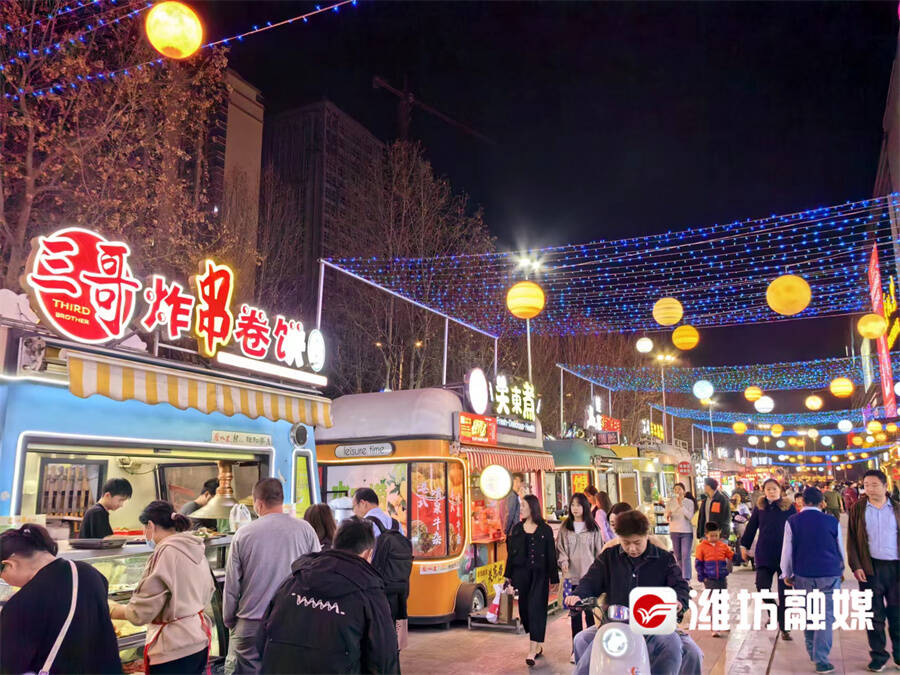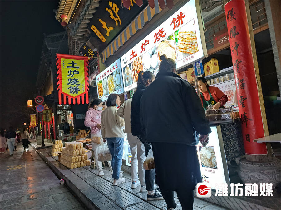 夜晚时分,青州泰华小吃一条街火爆起来。