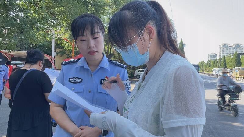 活动中,民警通过发放精心制作的“反诈试卷”,向考场外陪考的学生家长讲解高考之后诈骗分子常用的虚假查分网站链接、谎称拥有“内部指标”、低分考上“211、985”等诈骗手法和典型案例,揭露犯罪分子实施诈骗的手法和伎俩。引导考生家长提高思想警惕、增强防范意识,筑牢防范电信网络诈骗的思想防线。