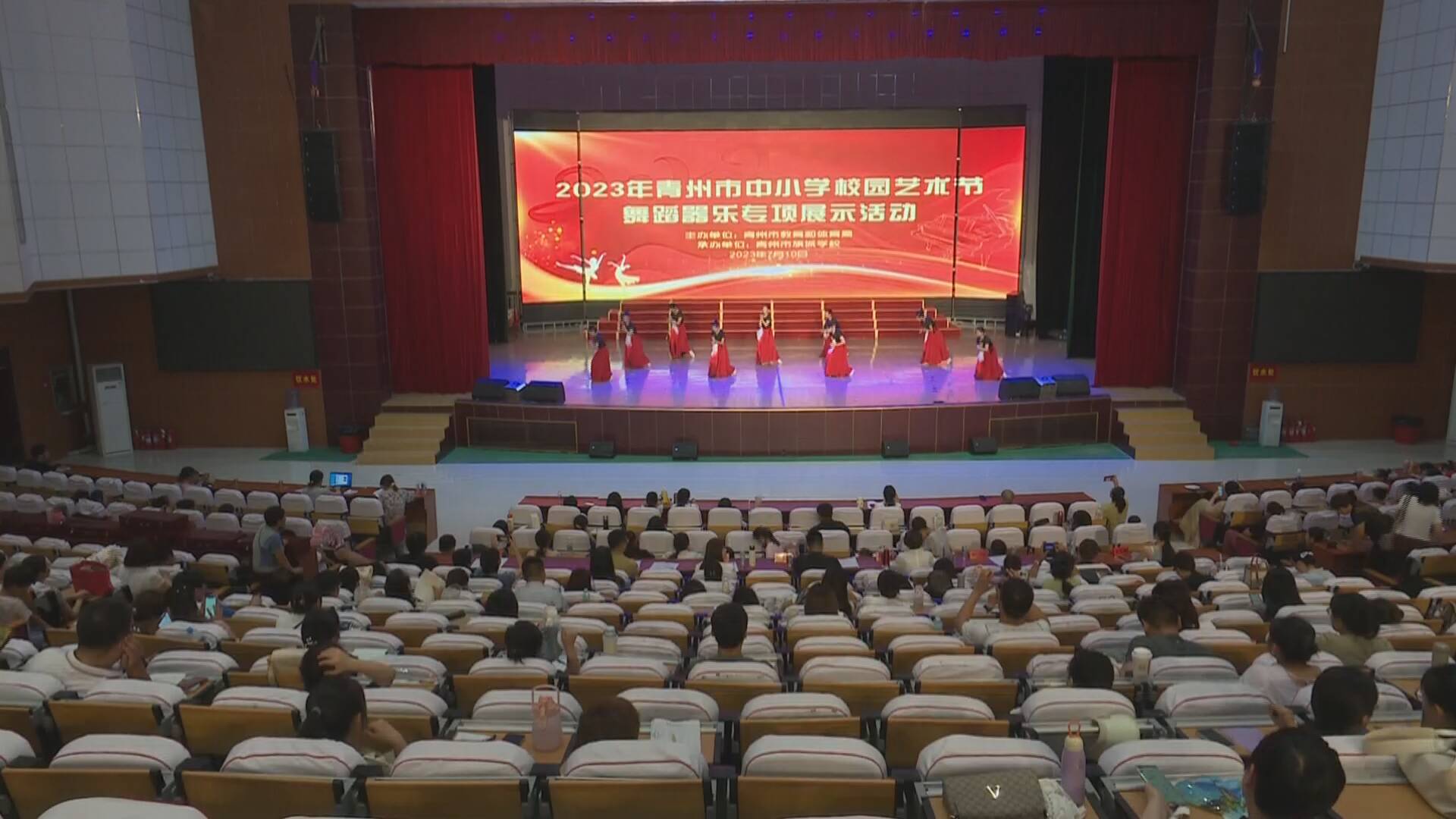 展演现场,600多名师生共同演绎了风格各异的舞蹈、器乐类作品,表达了对党对祖国对生活的无限热爱之情。青州市教体局组织专家评审团对每个节目进行了严格细致地评选。100余名音乐教师进行了现场观摩。此次选拔的优秀节目将代表青州市参加2023年潍坊市中小学校园艺术节舞蹈器乐专项展示活动。
