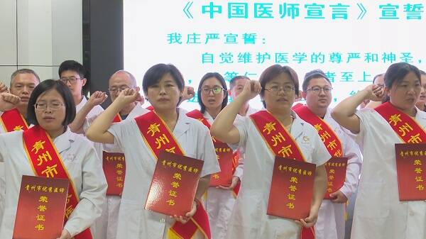优秀医师代表进行了《中国医师宣言》宣誓,要为建设健康青州做出自己的贡献。