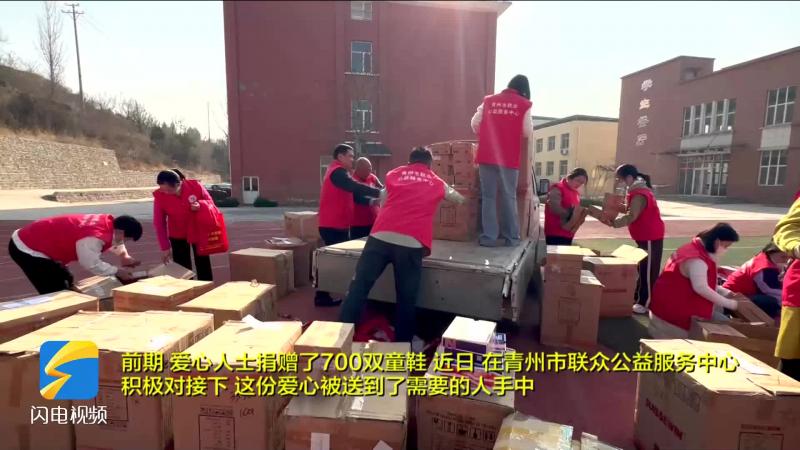 潍坊青州市温暖接力 !700双爱心童鞋送往王坟小学